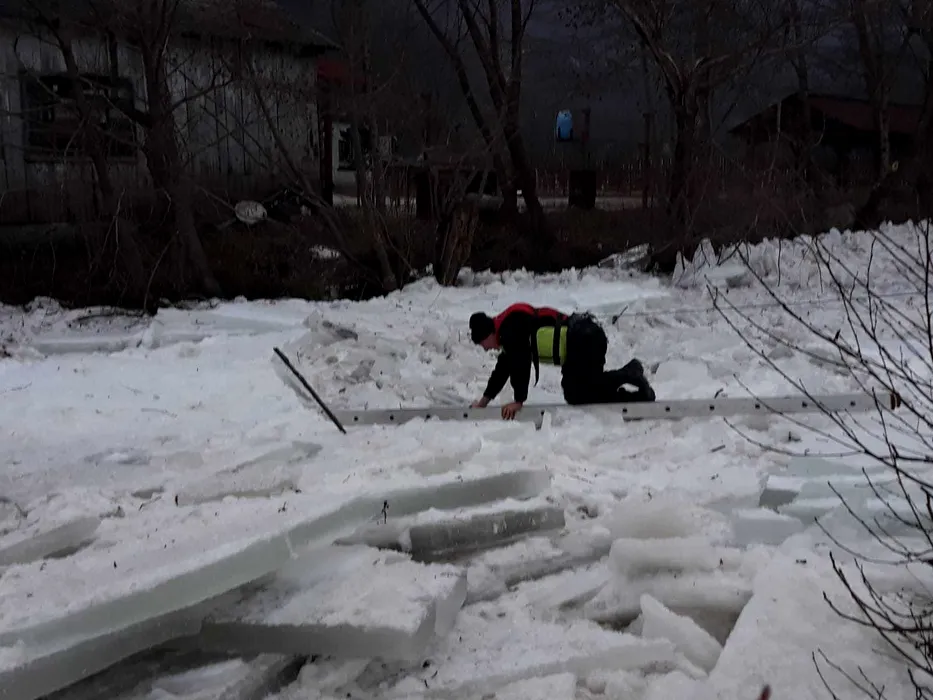 Un zăpor de GHEAȚĂ URIAȘ a fost DINAMITAT de pirotehniști pe un râu din Bistrița-Năsăud