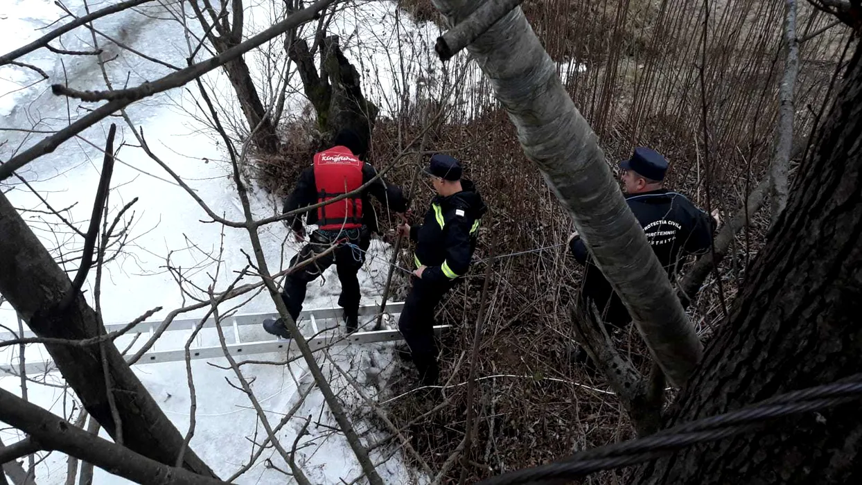 Un zăpor de GHEAȚĂ URIAȘ a fost DINAMITAT de pirotehniști pe un râu din Bistrița-Năsăud