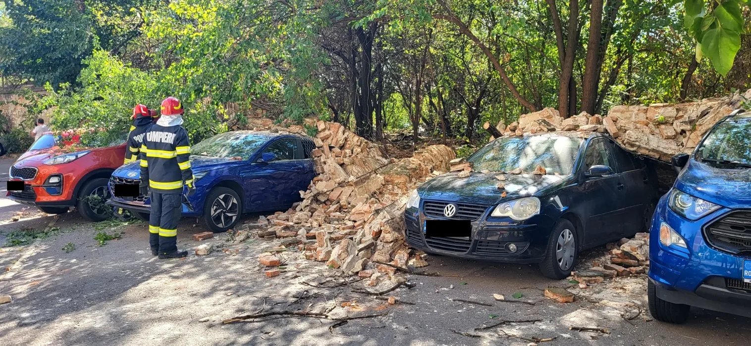 Un zid s-a prăbușit peste aproape 10 mașini în Sectorul 3. Ar fi vorba de un monument istoric