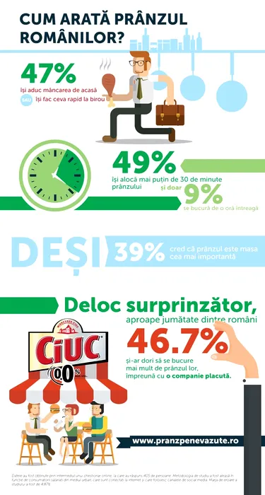 Unul din 2 români își alocă pentru masa de prânz mai puțin de 30 de minute pe zi