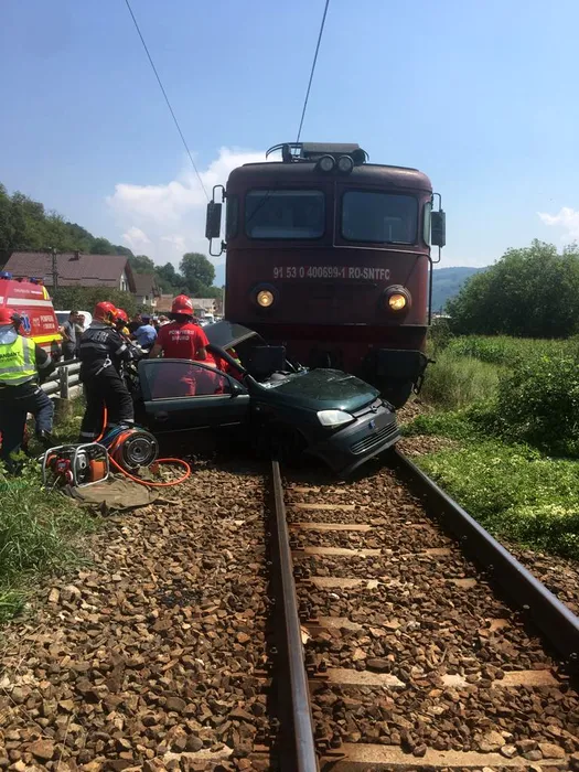 UPDATE Accident teribil în Bistrița-Năsăud: O mașină a fost spulberată de tren. Două persoane au decedat – FOTO