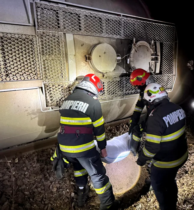 UPDATE: Trafic feroviar TEMPORAR OPRIT în Mehedinți. Cinci cisterne cu bezină au deraiat. ISU a intervenit pentru gestionarea riscului de EXPLOZIE