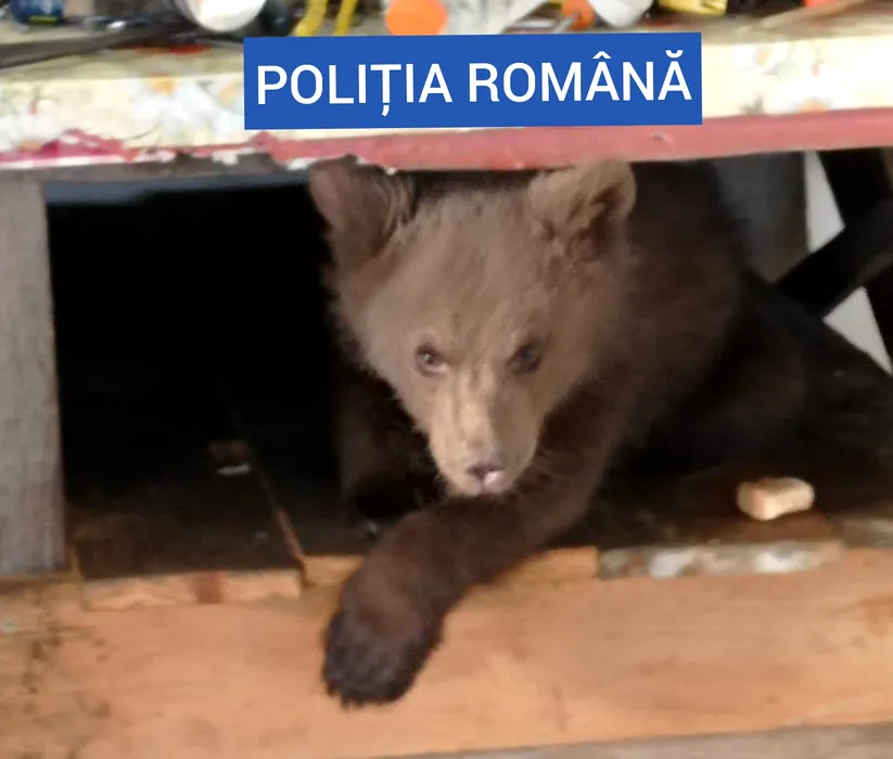 Ursoaică de patru luni, salvată de polițiștii maramureșeni. Ce au mai găsit autoritățile la locuința bărbatului care o ținea captivă