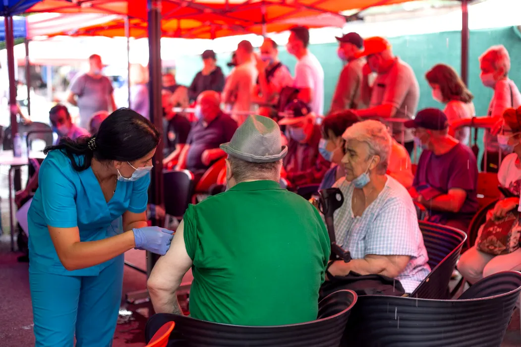 Vaccinarea cu mici și muștar continuă la centrul din Piața Obor. Românii au așteptat în ploaie să-și primească porția și doza (FOTOREPORTAJ)