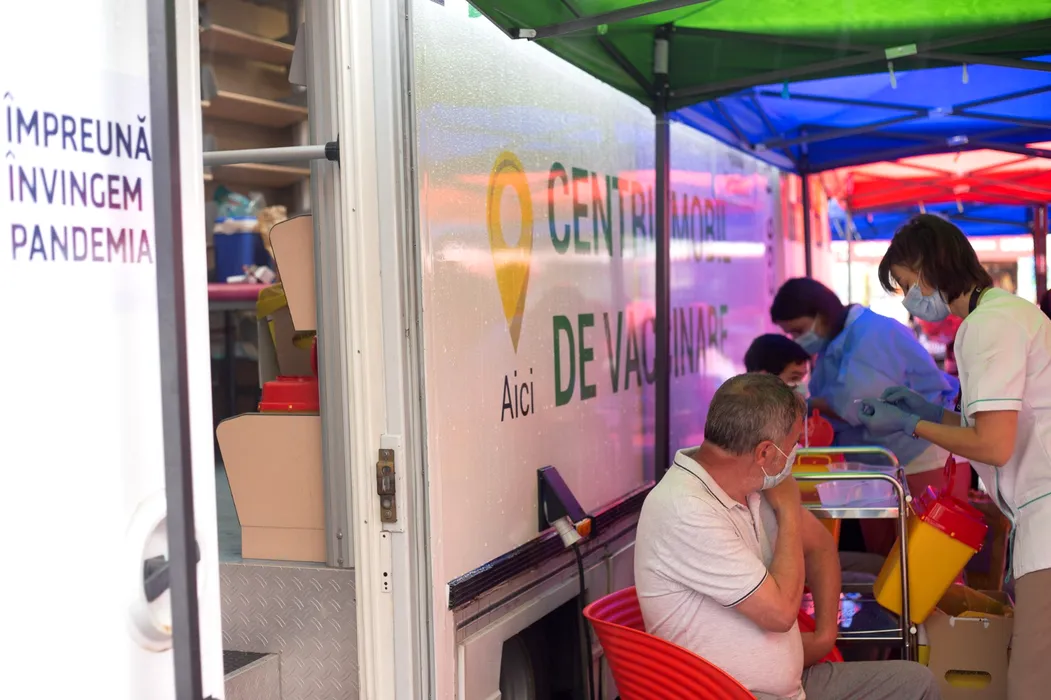 Vaccinarea cu mici și muștar continuă la centrul din Piața Obor. Românii au așteptat în ploaie să-și primească porția și doza (FOTOREPORTAJ)