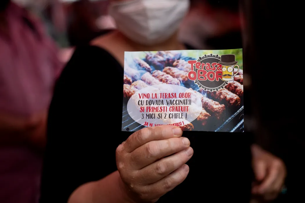 Vaccinarea cu mici și muștar continuă la centrul din Piața Obor. Românii au așteptat în ploaie să-și primească porția și doza (FOTOREPORTAJ)