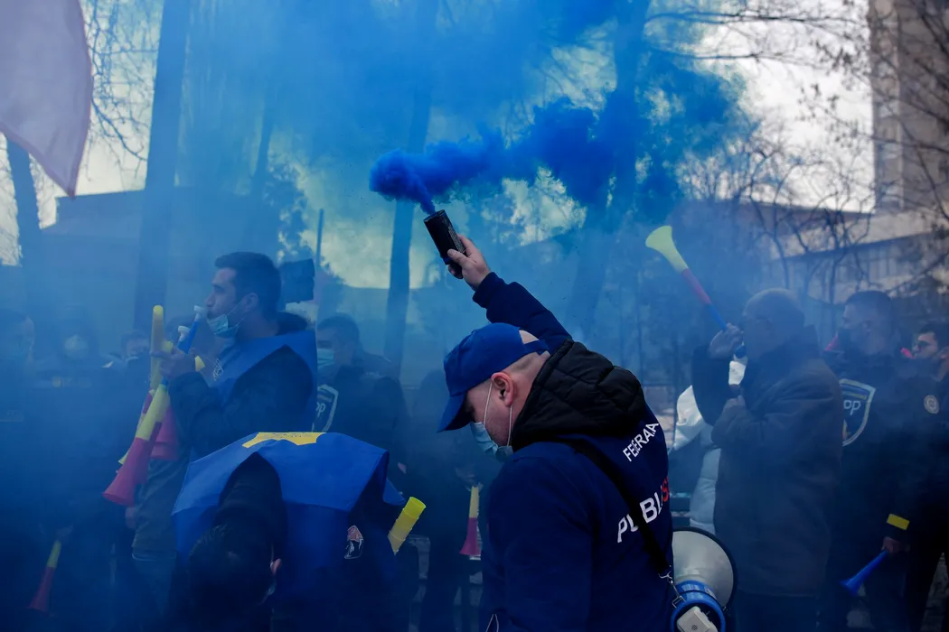 Val de proteste în țară. Polițiștii care manifestă la Cotroceni au folosit fumigene și s-au îmbrâncit cu jandarmii: „Ați primit ordin să ne bruscați, să ne gazați!” / Sursă FOTO: Andreea Alexandru - Mediafax Foto