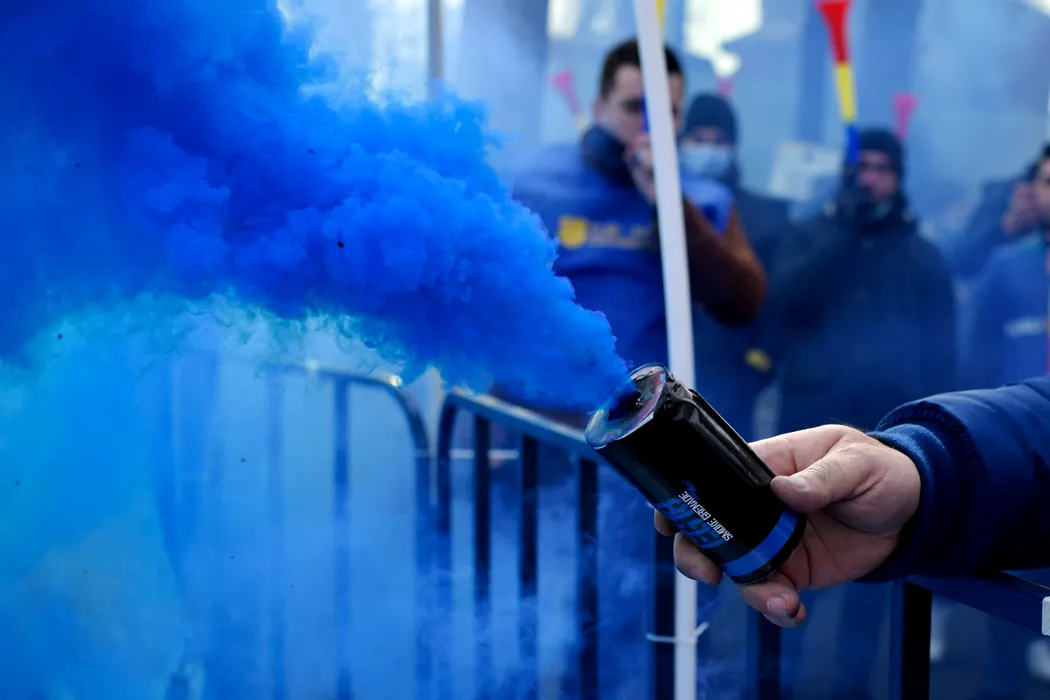 Val de proteste în țară. Polițiștii care manifestă la Cotroceni au folosit fumigene și s-au îmbrâncit cu jandarmii: „Ați primit ordin să ne bruscați, să ne gazați!” / Sursă FOTO: Andreea Alexandru - Mediafax Foto