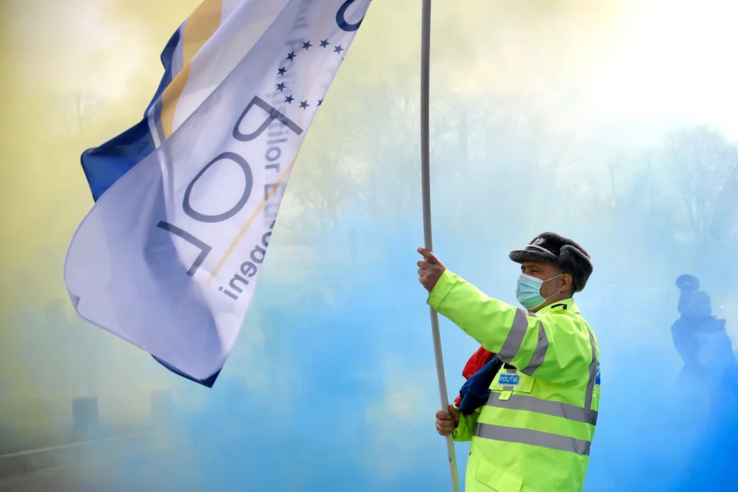 GALERIE FOTO: Val de proteste în țară. Polițiștii care manifestă la Cotroceni au folosit fumigene și s-au îmbrâncit cu jandarmii: „Ați primit ordin să ne bruscați, să ne gazați!” – FOTO/VIDEO