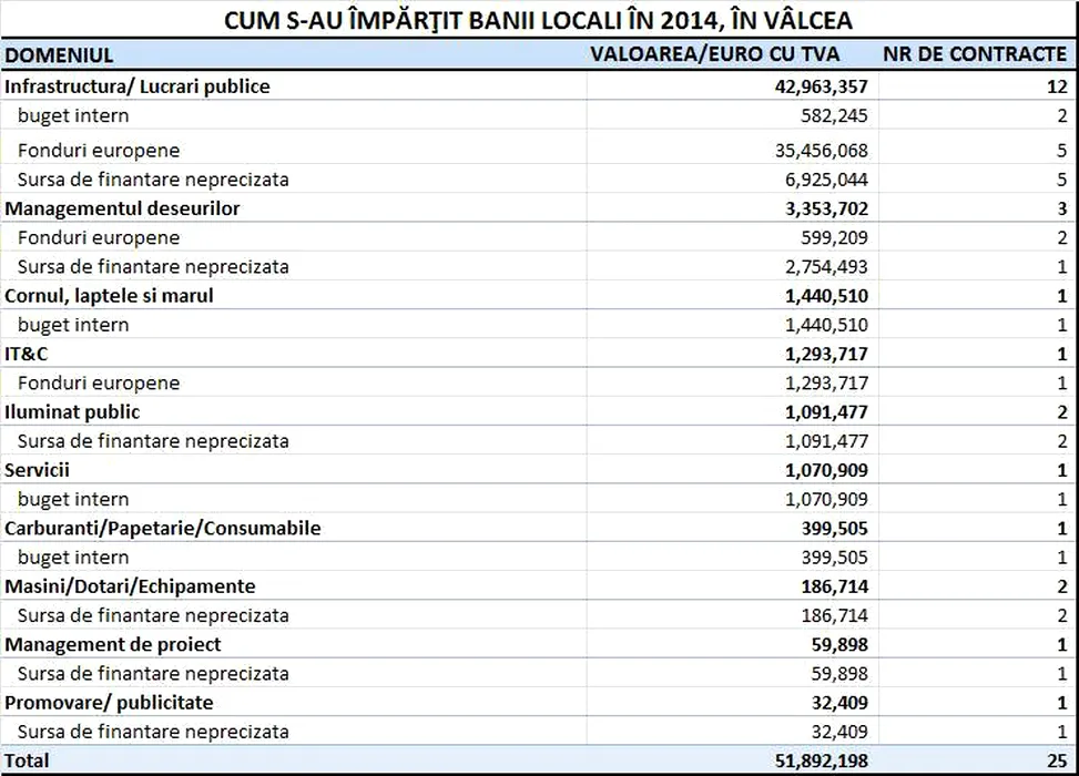 VÂLCEA. Unde au mers banii publici în 2014. Topul firmelor care au contracte locale cu statul