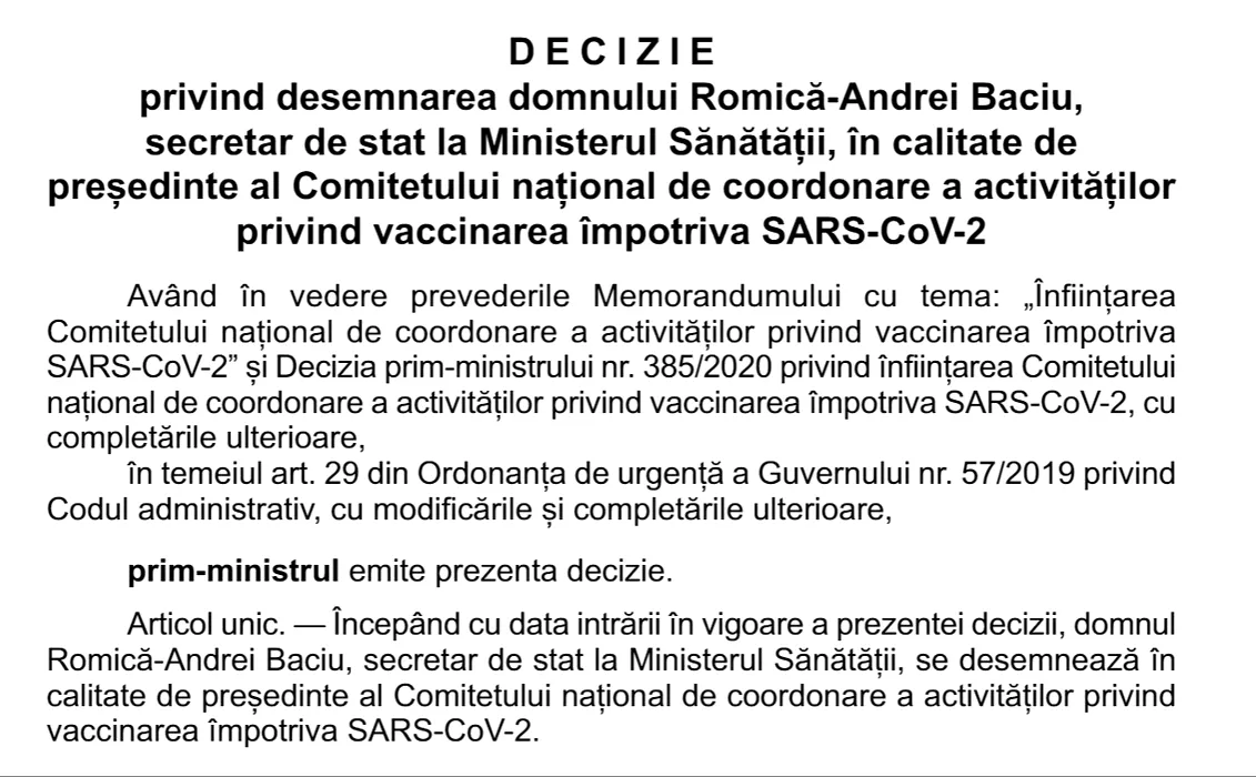 Valeriu Gheorghiță, înlocuit de la conducerea CNCAV cu secretarul de stat Andrei Baciu. Ce spune medicul care a coordonat un an și trei luni campania de vaccinare anti-COVID
