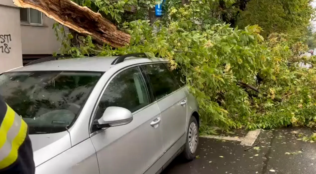 Vântul a făcut prăpăd în București: o persoană rănită, zeci de mașini distruse de copacii căzuți, cabluri rupte, construcții avariate