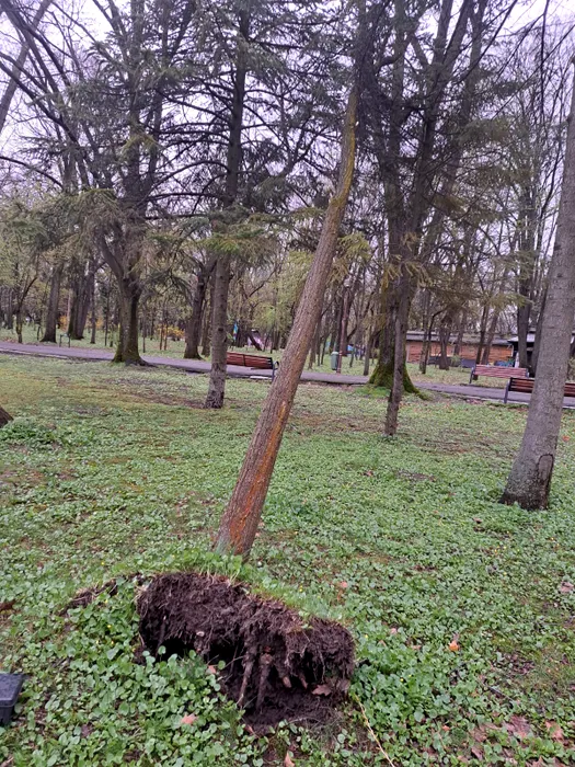 UPDATE: FOTO | Vântul puternic a făcut RAVAGII în Capitală: 39 de mașini au fost avariate, 57 de copaci s-au rupt, iar șase stâlpi au fost dărâmați