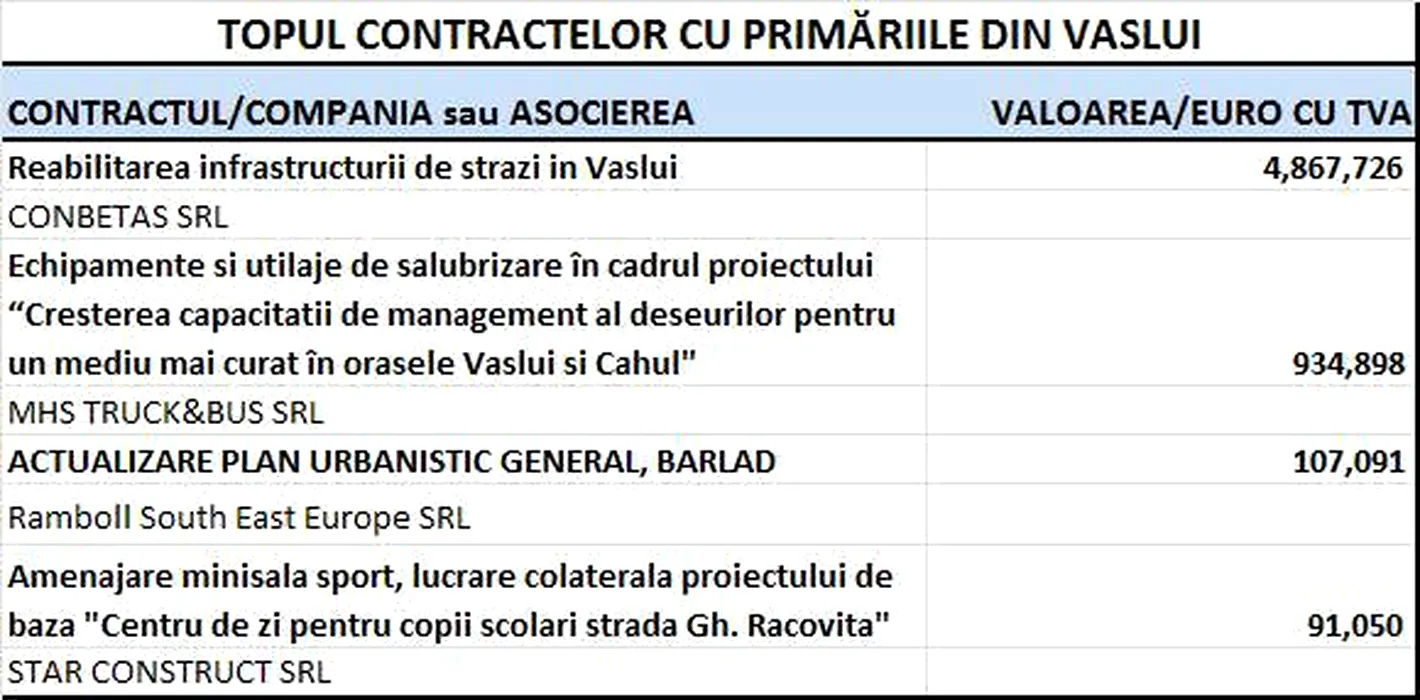 VASLUI. Unde au mers banii publici în 2014. Topul firmelor care au contracte locale cu statul