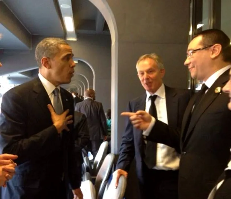 Victor Ponta a a postat pe Facebook „dovada” întâlnirii cu Barack Obama, pe stadionul din Johannesburg. Tony Blair a intermediat discuția
