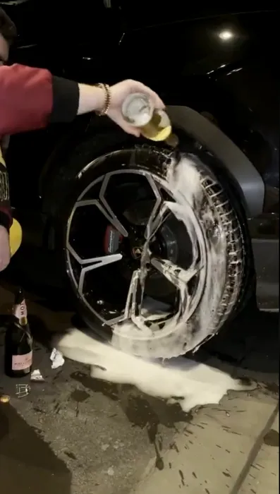 Victoraș Micula, o nouă aroganță! Și-a spălat roțile de la Lamborghini cu șampanie scumpă: „Să văd care curăță mai bine” (FOTO)