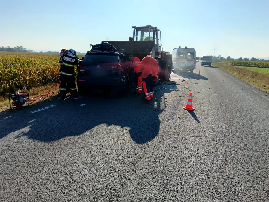 VIDEO Accident grav pe centura municipiului Rădăuți. Un autoturism s-a făcut praf după ce a intrat într-o volă. Savatorii intervin de urgență