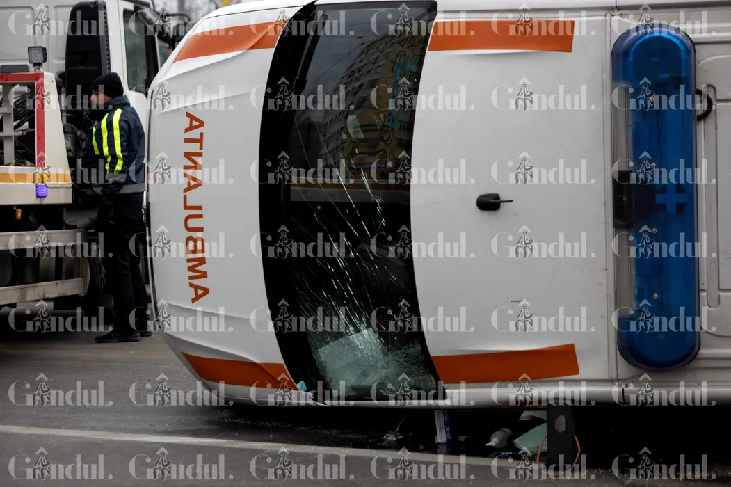 VIDEO | Accident rutier grav în București! O ambulanță ce transporta un pacient, lovită în plin de un bolid
