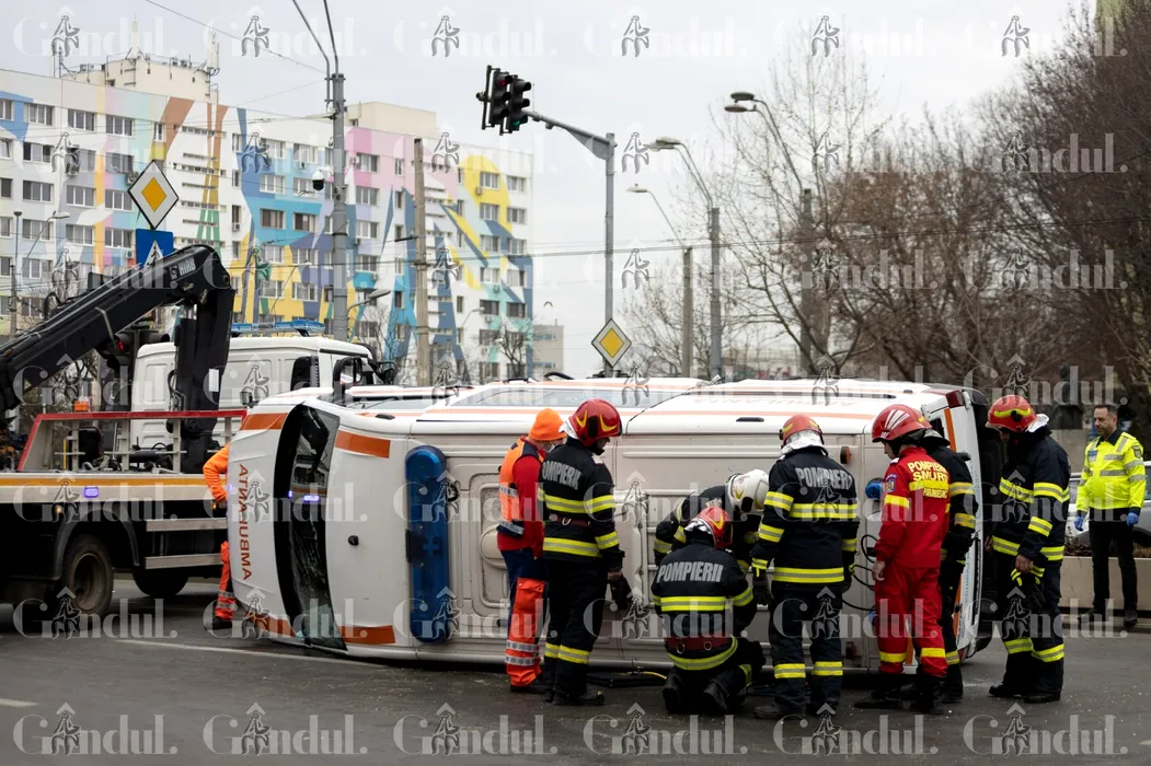 VIDEO | Accident rutier grav în București! O ambulanță ce transporta un pacient, lovită în plin de un bolid