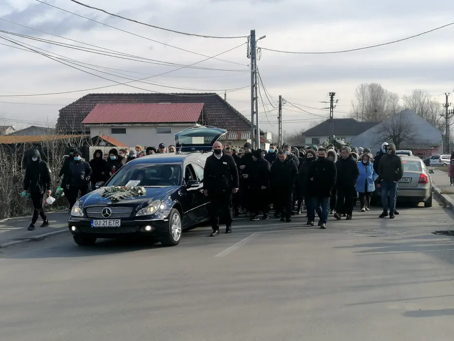 VIDEO | Adela, polițista care s-a împușcat în cap, înmormântată fără slujbă în biserică. Fotografia din ziua nunții, lipită pe mașini