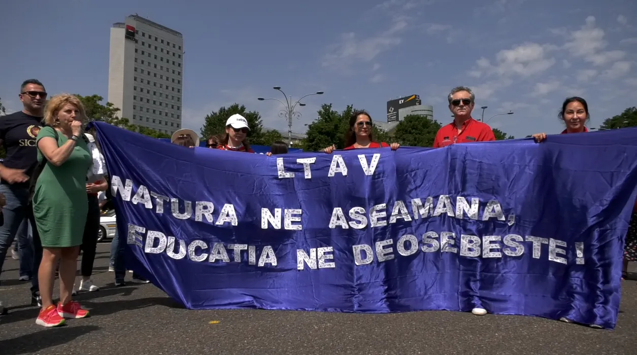 VIDEO | Angajații din învățământ au protestat, din nou, în Piața Victoriei și la Palatul Parlamentului. „Eu vreau salariu, nu vreau pomană”