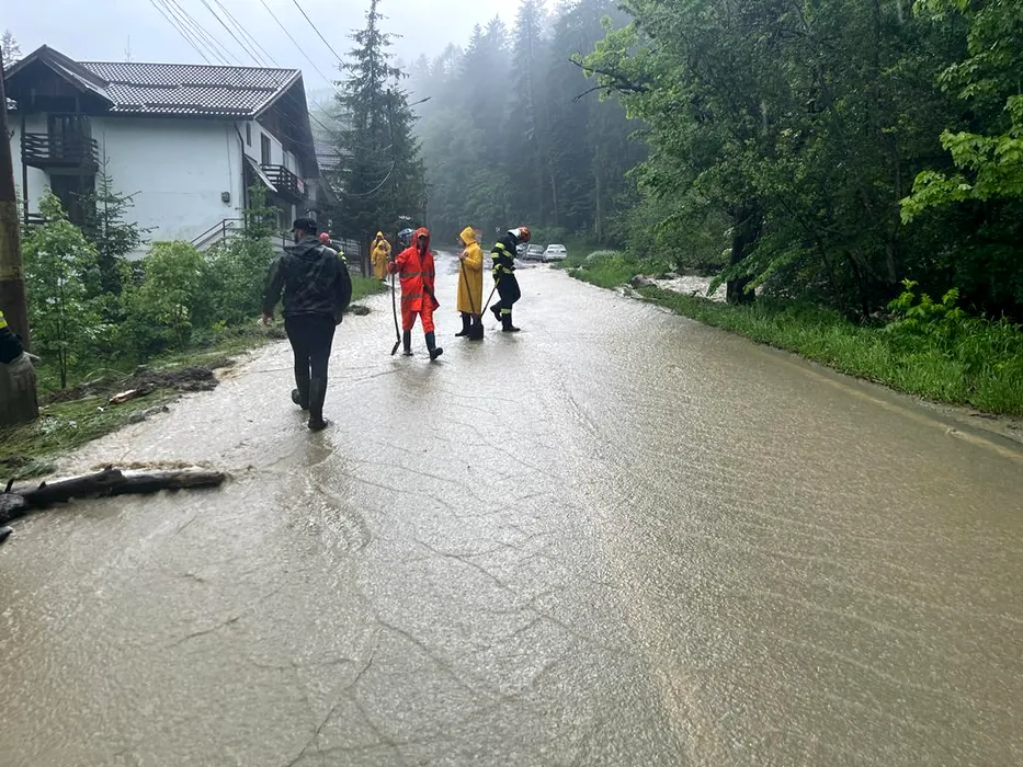 VIDEO | Bărbat surprins de viitură în Prahova. Un podeț s-a surpat în Comarnic