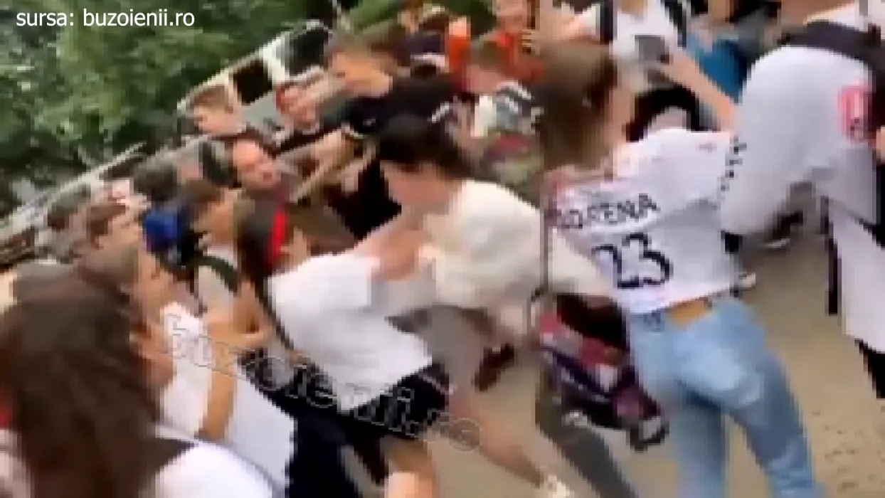 VIDEO | Bătaie între două eleve din Buzău. Imagini șocante cu fetele, care sunt încurajate de colegi