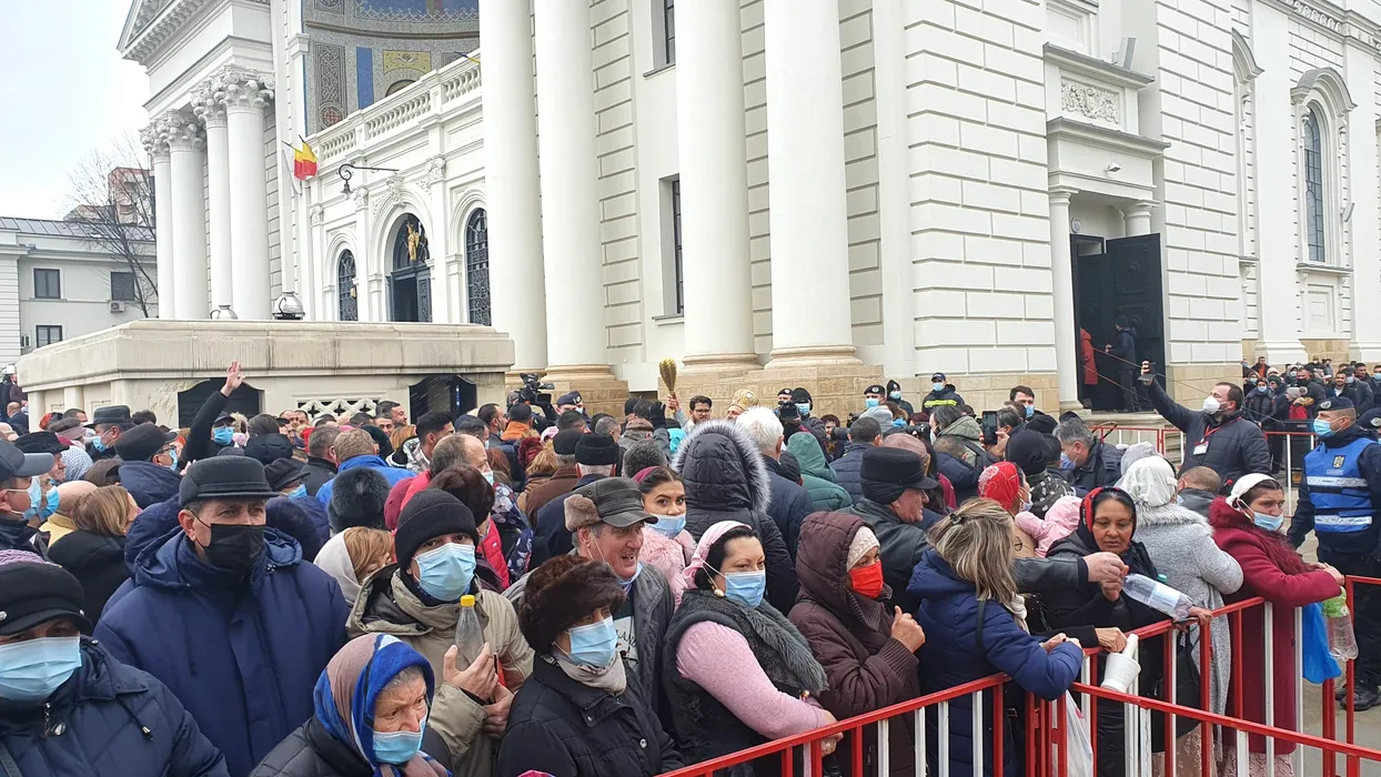 VIDEO | Bobotează în pandemie la Iași. Preoții au îndemnat la răbdare și înțelegere, credincioșii s-au îmbulzit să ia Agheasmă Mare: „Umple-l pe tot, unde vii cu el așa la mine?”
