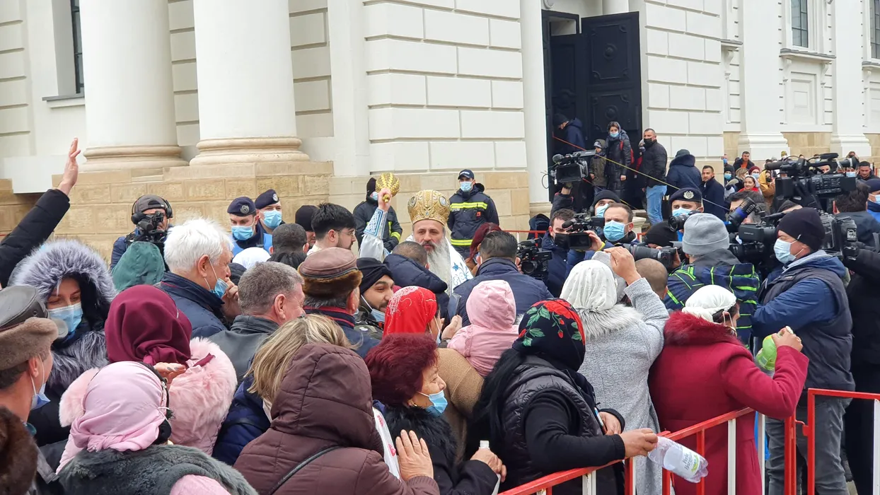 VIDEO | Bobotează în pandemie la Iași. Preoții au îndemnat la răbdare și înțelegere, credincioșii s-au îmbulzit să ia Agheasmă Mare: „Umple-l pe tot, unde vii cu el așa la mine?”
