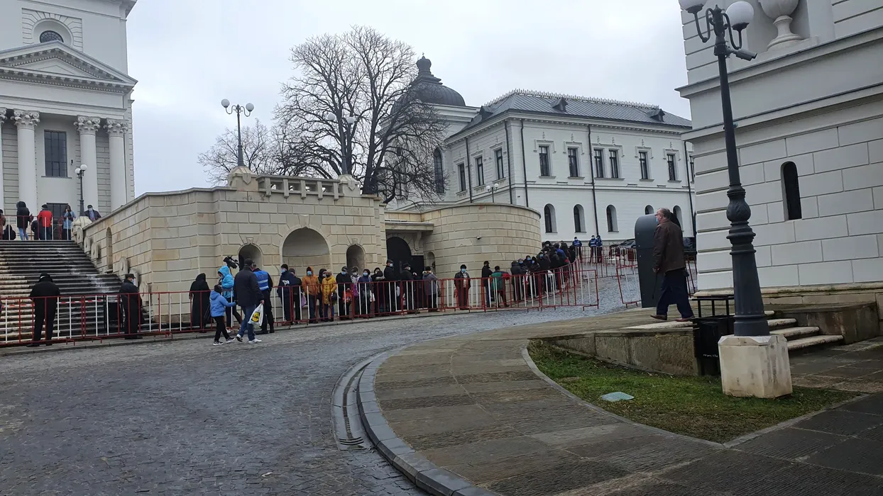 VIDEO | Bobotează în pandemie la Iași. Preoții au îndemnat la răbdare și înțelegere, credincioșii s-au îmbulzit să ia Agheasmă Mare: „Umple-l pe tot, unde vii cu el așa la mine?”