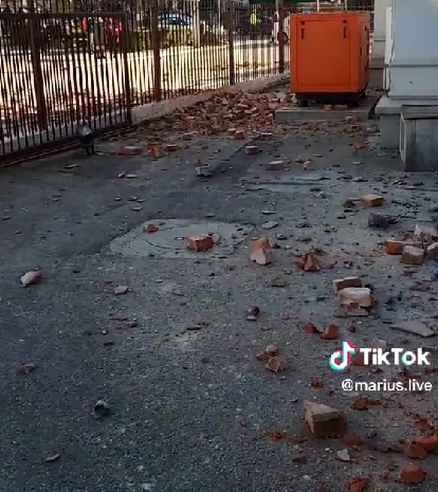 VIDEO | Bucăți de tencuială au căzut peste mașini la Târgu Jiu. Clădirea Primăriei a fost evacuată
