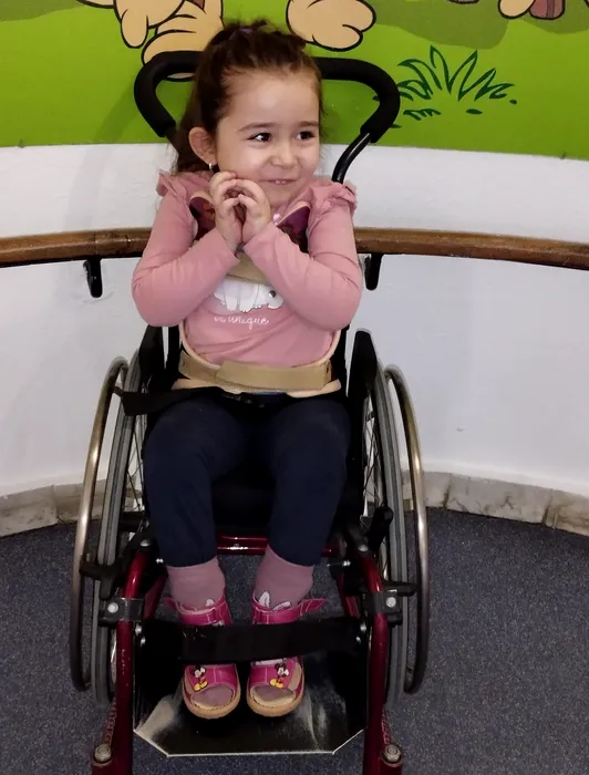 Irina se luptă, la doar 4 ani, cu amiotrofia spinală, boala care îi ”topește” mușchii și o ține în scaunul cu rotile