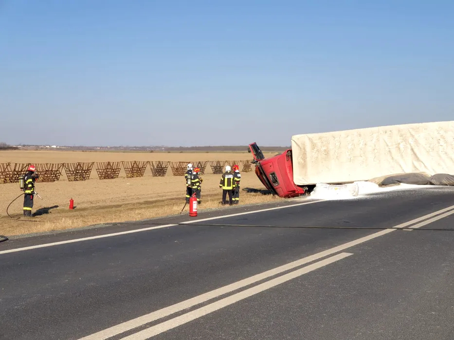 VIDEO | Cum a fost evitată o tragedie ca cea de la Mihăilești, în care 18 persoane au murit. Ce au făcut pompierii după ce un TIR cu azotat s-a răsturnat vineri în Ialomița