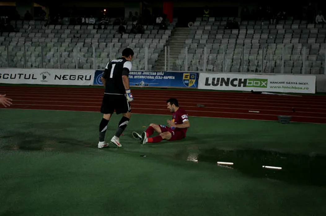 VIDEO: Derby-ul „U” Cluj – CFR Cluj, ÎNTRERUPT după ce portarul gazdelor l-a luat LA PUMNI pe Cadu de la CFR. Jucătorul a ajuns la spital. Partida NU S-A MAI RELUAT