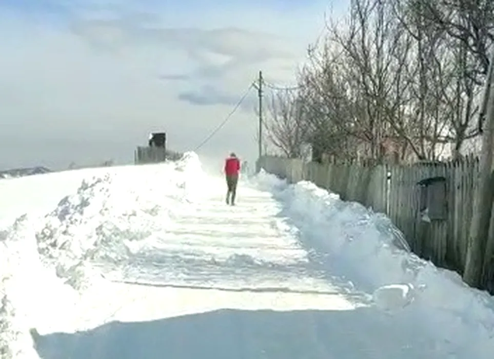 VIDEO & FOTO | Zăpadă de peste un metru într-o comună din Vrancea, după ce a nins ore în șir: „Iarna şi-a arătat colţii la final de anotimp”