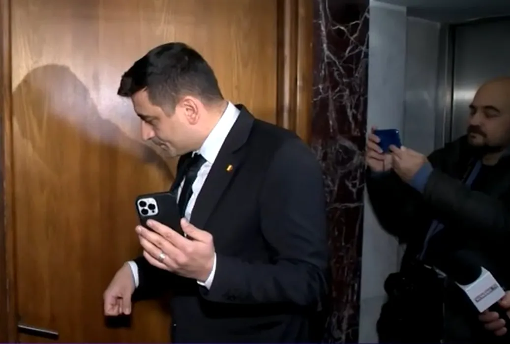 VIDEO | George Simion, circ la conferința de presă a lui Virgil Popescu. „Domnule ministru, nu mai blocați ușa!”