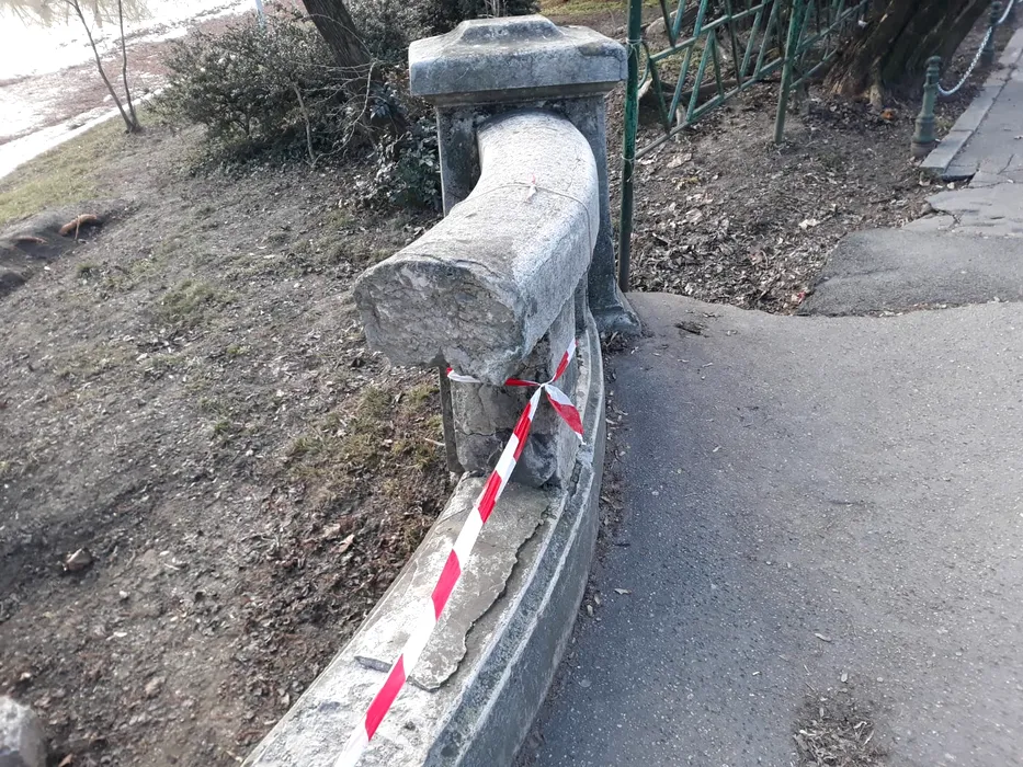 VIDEO | Imaginea neputinței: Nici acum nu a intrat în reparații Podul Mare din Cișmigiu, iar balustrada prăbușită în octombrie zace și în prezent pe jos