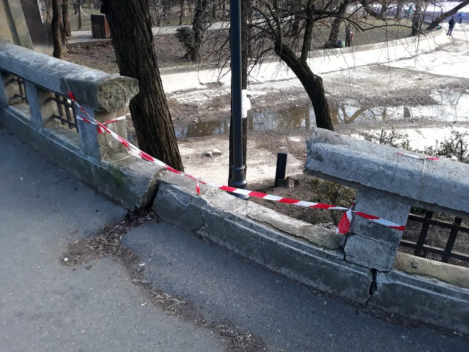 VIDEO | Imaginea neputinței: Nici acum nu a intrat în reparații Podul Mare din Cișmigiu, iar balustrada prăbușită în octombrie zace și în prezent pe jos