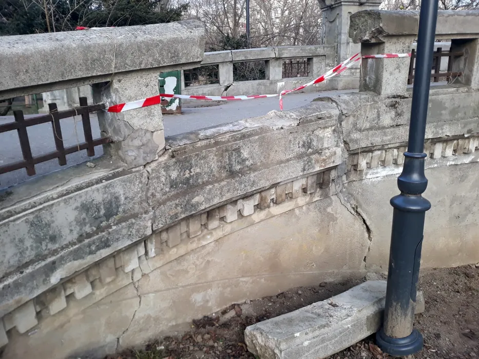 VIDEO | Imaginea neputinței: Nici acum nu a intrat în reparații Podul Mare din Cișmigiu, iar balustrada prăbușită în octombrie zace și în prezent pe jos