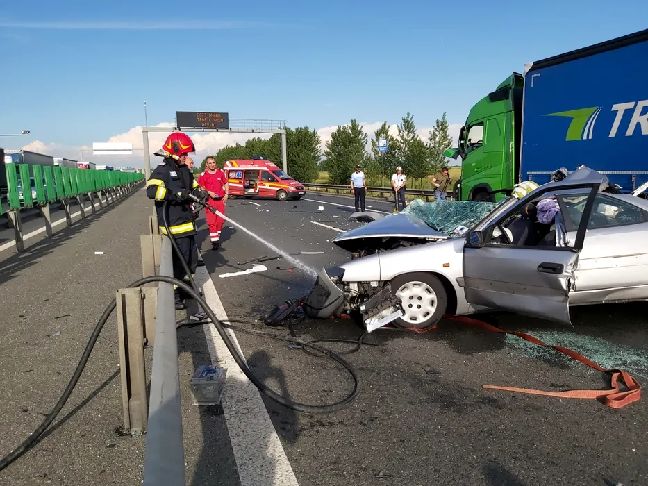 VIDEO | Imagini șocante în vama Nădlac. Un șofer a intrat cu viteză într-un TIR staționat