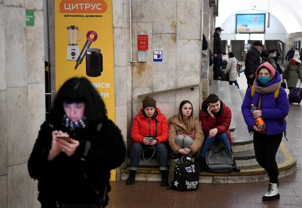 People take shelter in a metro station in Kyiv in the morning of February 24, 2022. Air raid sirens rang out in downtown Kyiv today as cities across Ukraine were hit with what Ukrainian officials said were Russian missile strikes and artillery. Russian President Vladimir Putin announced a military operation in Ukraine on Thursday with explosions heard soon after across the country and its foreign minister warning a "full-scale invasion" was underway.,Image: 664571340, License: Rights-managed, Restrictions: , Model Release: no, Credit line: Profimedia
