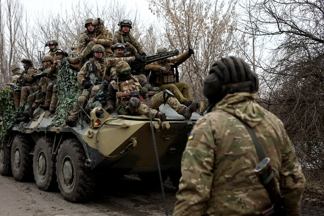 Ukrainian servicemen get ready to repel an attack in Ukraine's Lugansk region on February 24, 2022. Russian President Vladimir Putin launched a full-scale invasion of Ukraine on Thursday, killing dozens and forcing hundreds to flee for their lives in the pro-Western neighbour. Russian air strikes hit military facilities across the country and ground forces moved in from the north, south and east, triggering condemnation from Western leaders and warnings of massive sanctions.,Image: 664647303, License: Rights-managed, Restrictions: , Model Release: no, Credit line: Profimedia