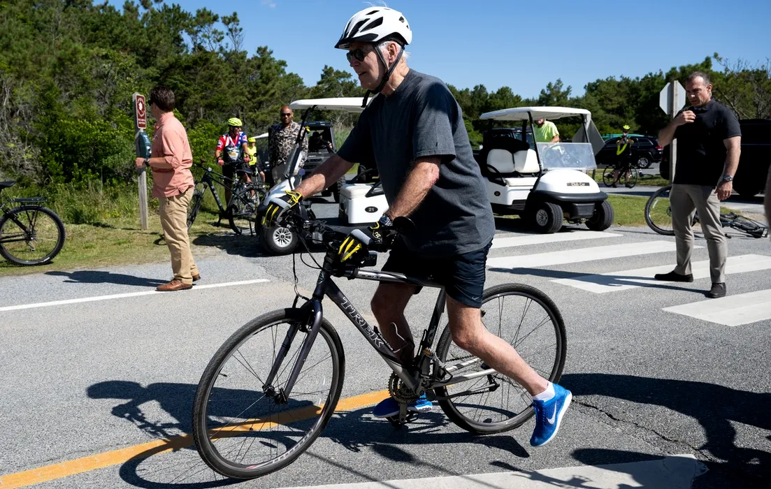 GALERIE FOTO: VIDEO | Joe Biden a căzut de pe bicicletă, în timp ce încerca să coboare din șa pentru a discuta cu trecători şi jurnalişti