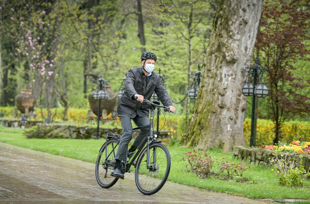 Klaus Iohannis a mers pe bicicletă la Palatul Cotroceni. Președintele s-a alăturat, astfel, campaniei Vinerea Verde: „O găsesc foarte bună” (FOTO-VIDEO)