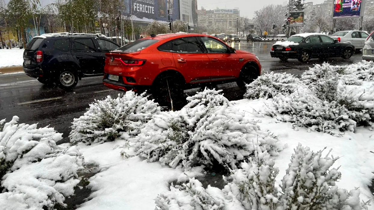 GALERIE FOTO/VIDEO | Lapoviță și NINSOARE în mai multe zone din România, inclusiv în Capitală