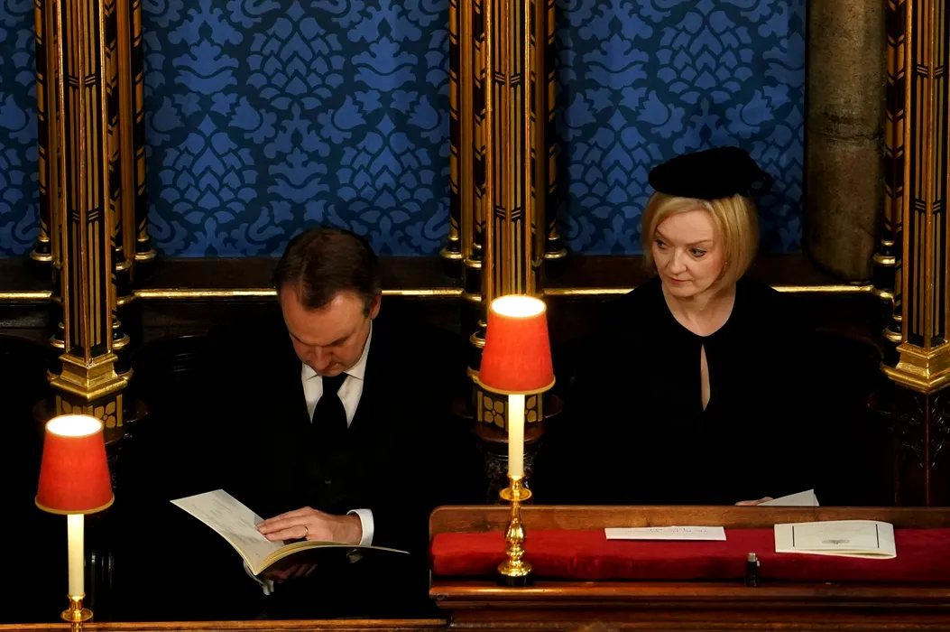 Hugh O'Leary and Prime Minister Liz Truss, attending the State Funeral of Queen Elizabeth II, held at Westminster Abbey, London