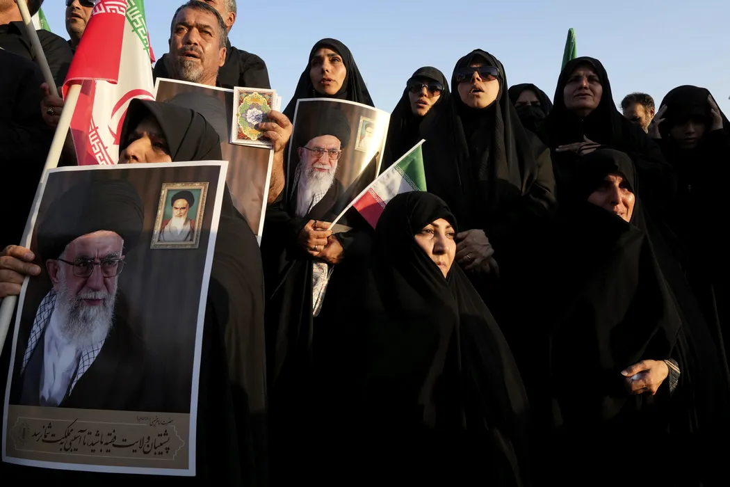 File - Iranian pro-government demonstrators hold posters of the Supreme Leader Ayatollah Ali Khamenei during their rally condemning recent anti-government protests over the death of Mahsa Amini, a 22-year-old woman who had been detained by the nation's morality police, in Tehran, Iran, Sunday, Sept. 25, 2022. (AP Photo/Vahid Salemi, File)