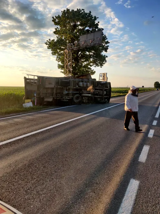 VIDEO | Mesaj Ro-Alert inedit: Locuitorii unei comune din Neamț au fost avertizați de pericolul să fie înțepați de albine după ce un camion cu stupi s-a răsturnat pe E 85