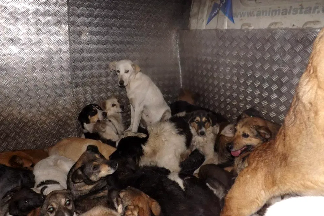 VIDEO. O asociație pentru protecția animalelor „a deturnat” o dubă în care erau înghesuiți zeci de maidanezi. „Urmau să fie omorâți”. GALERIE FOTO