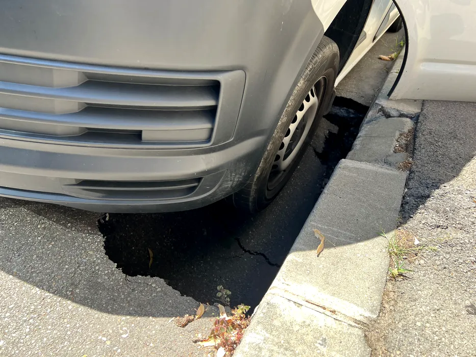 VIDEO | O camionetă de curierat a căzut într-o groapă formată în carosabil, în zona Capitale din București. Ce măsuri au luat pompierii